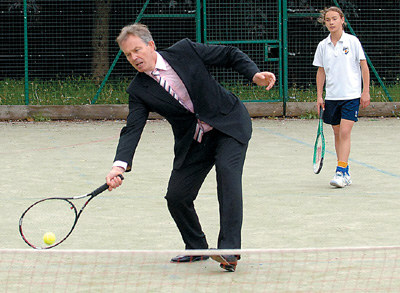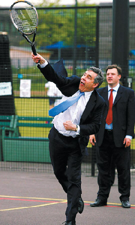 布朗13日在訪問西倫敦學院的時候,穿著筆挺的西裝在網(wǎng)球場上展示了自己的發(fā)球功夫,他轟出了一個強有力的aces球直接得分。從他拋球、引拍、扣球到收拍的一系列動作來看,布朗的運動天賦和網(wǎng)球能力的確不錯。在網(wǎng)球這項在英國很受歡迎的運動上,喜歡進攻的布朗展示了比守在底線的前首相布萊爾更加出色的球技。