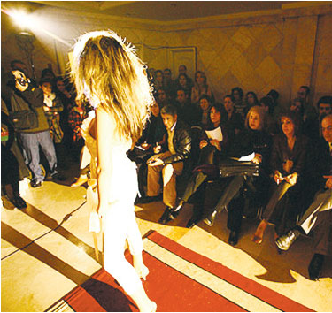 兩個(gè)月前剛剛觀看過一次地下時(shí)裝秀表演的阿米爾,神秘兮兮地對(duì)記者介紹說:“是朋友的朋友介紹我去的。他們事先留下了我的電話號(hào)碼。表演當(dāng)晚,我先收到一條短信,是一個(gè)號(hào)碼,讓我打過去確認(rèn)表演地址。我打過去后,馬上就有人詢問‘你是誰介紹來的’一類的問題。回答準(zhǔn)確無誤后,我又收到短信,這次是一個(gè)地址!卑⒚谞枌(duì)這種運(yùn)作方式表示理解,他說:“法律是不允許組織這種活動(dòng)的,我們的確應(yīng)該很小心,嚴(yán)格把關(guān)非常必要!