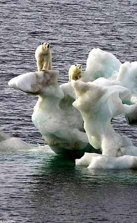 | 兩只北極熊被困在浮冰之上(資料圖) |