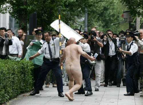 英國《每日電訊報》援引當(dāng)?shù)孛襟w報道說,這名男子一絲不掛跳入日本明仁天皇宮邸前的護(hù)城河,然后上岸向警方投擲石塊并擊中兩名警察。