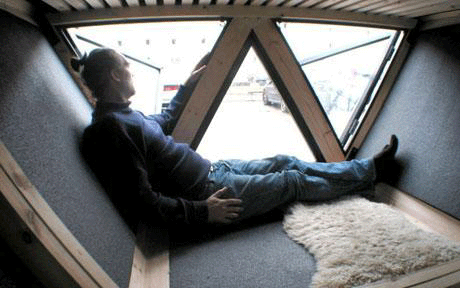 設(shè)計(jì)師之一的斯拉脫先生計(jì)劃在這間屋子返回哥本哈根后住進(jìn)這個(gè)他為之工作了兩年的房屋中去。他說他的設(shè)計(jì)靈感來源于一次在劍橋郡同羅馬尼亞游客的相遇?!斑@間屋子不僅僅是為旅行者準(zhǔn)備的,它也適用于任何對(duì)游牧生活方式感興趣的人。”(王菁)