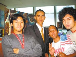 流傳在網(wǎng)上的照片顯示,阿納斯身穿黑色西裝站在幾名印尼年輕人中間,臉上露出奧巴馬式的招牌微笑,就仿佛是真正的奧巴馬在訪問印尼期間與粉絲合影一般。
