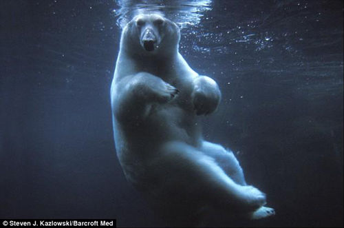 中國(guó)日?qǐng)?bào)網(wǎng)環(huán)球在線消息:據(jù)英國(guó)《每日郵報(bào)》6日?qǐng)?bào)道,美國(guó)攝影師史蒂文·約翰·科茲洛夫斯基(Steven John Kazlowski) 在北極地區(qū)歷經(jīng)5年拍攝到了許多北極熊罕見(jiàn)的生活照??破澛宸蛩够谜掌蛉藗冋故玖吮睒O熊潛入深水,陪伴幼熊以及尋找獵物時(shí)的自然美與優(yōu)雅。報(bào)道稱,攝影師科茲洛夫斯基曾先后在北極地區(qū)拍攝到許多令人驚嘆的野生動(dòng)物圖片。而這組照片則是出自科茲洛夫斯基的新書《最后一只北極熊》。