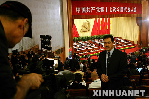 10月15日,中國共產(chǎn)黨第十七次全國代表大會在北京人民大會堂隆重開幕。這是外國記者在大會會場進(jìn)行報道。
