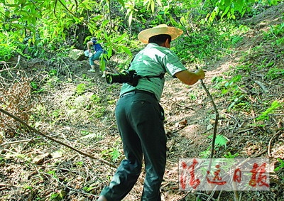 17日夜晚,記者在英德三防辦守候到了18日凌晨。按預(yù)計,洪峰應(yīng)該在12時前達到最高峰。17日晚12時前,洪峰卻有所下降,水位為33.8米。然而,到了18日早上7時,北江水位猛然漲到34.19米,到了本次洪水最高水位。英德馬上進入最緊急狀態(tài),更加嚴(yán)密地巡堤。8時15分,巡堤員報告險情:西岸防洪堤北段斷崗山段發(fā)現(xiàn)管涌、跌窩。記者18日早晨8時40分,到英德三防辦獲悉這一險情,隨即趕到現(xiàn)場。
