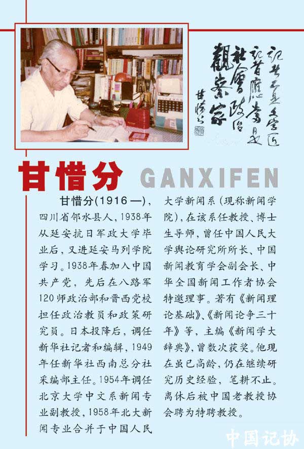 中國日報(bào)網(wǎng)環(huán)球在線消息:由中國記協(xié)、新聞戰(zhàn)線“三項(xiàng)學(xué)習(xí)教育活動(dòng)”領(lǐng)導(dǎo)小組辦公室和中華新聞傳媒網(wǎng)聯(lián)合主辦的長江韜奮獎(jiǎng)獲獎(jiǎng)?wù)呦盗性L談,不久前專程組織采訪了92歲的老新聞工作者、中國人民大學(xué)新聞系最早的兩位博導(dǎo)之一——甘惜分老師(注:另一位是方漢奇老師)。訪談共8部分,這是訪談的第1部分。