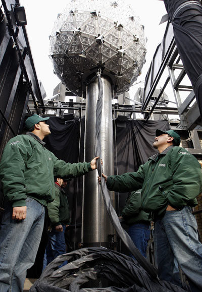 時代廣場彩燈百年紀(jì)念更換節(jié)能燈泡
