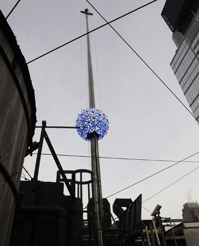 中國日報網(wǎng)環(huán)球在線消息:紐約時代廣場新年之夜巨形水晶彩球今年將迎來其100歲“生日”。在今年的新年前夜,這顆彩球?qū)⒁怨?jié)能環(huán)保的嶄新形象出現(xiàn)在人們眼前。與往年不同,菲利普照明公司今年專門為彩球設(shè)計了9576只節(jié)能燈泡,這些燈泡所耗費(fèi)的電能僅相當(dāng)于10個烤面包機(jī),但是其亮度卻相當(dāng)于去年的兩倍,透過彩球外殼的水晶三角裝飾,人們可以看到彩球變換出超過1600萬種色彩。
