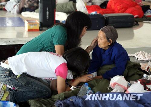5月22日,兩位綿陽(yáng)的志愿者在悉心照顧來(lái)自北川災(zāi)區(qū)的蔣桂芳老人。志愿者們?yōu)槔先讼茨?、擦手、掏耳朵、剪指甲,無(wú)微不至,親同祖孫。四川汶川大地震發(fā)生后,在綿陽(yáng)市九洲體育館設(shè)立的受災(zāi)群眾接待安置中心,許多來(lái)自全國(guó)各地,不同職業(yè)、不同年齡的志愿者用細(xì)致周到的服務(wù)為受災(zāi)群眾排憂解難,并以自己的愛(ài)心和關(guān)懷撫慰受災(zāi)群眾,幫助他們渡過(guò)難關(guān),重建家園。新華社記者王建民攝