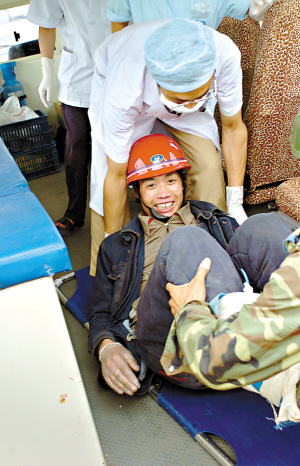 被送進(jìn)醫(yī)院時(shí),劉洪坤一臉笑容。 (新華社供圖)