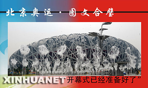 中國日報網(wǎng)環(huán)球在線消息:舉世矚目的北京奧運(yùn)會開幕式8月8日晚將在北京國家體育場“鳥巢”舉行,各項(xiàng)準(zhǔn)備工作已全面進(jìn)入臨戰(zhàn)狀態(tài)。開幕式總導(dǎo)演張藝謀在接受新華社記者采訪時表示,一切都已準(zhǔn)備就緒,唯一擔(dān)心的就是開幕式時下雨。