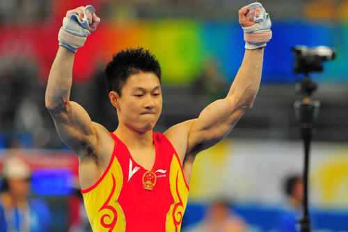 中國日報網(wǎng)環(huán)球在線消息:北京時間8月12日上午10時,2008年北京奧運會體操男子團體決賽在國家體育館揭開戰(zhàn)幕。決賽仍采用6-3-3賽制,中國隊的比賽順序為:自由體操、鞍馬、吊環(huán)、跳馬、雙杠、單杠。最終中國隊以286.125分奪得了北京奧運會體操男團的金牌,這也是體操賽場誕生的第一塊金牌。中國男團繼悉尼奧運會之后再次站在了奧運會的最高領獎臺上。