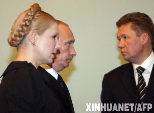 1月17日,俄羅斯總理普京(左二)、烏克蘭總理季莫申科(左一)和俄羅斯天然氣工業(yè)股份公司總裁米勒準(zhǔn)備出席在莫斯科舉行的保障俄對(duì)歐供氣的國(guó)際會(huì)議。俄羅斯政府發(fā)言人18日說(shuō),俄羅斯和烏克蘭已就解決天然氣爭(zhēng)端達(dá)成初步協(xié)議,俄對(duì)歐供氣有望很快恢復(fù)。新華社/法新