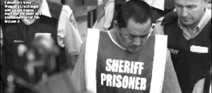 去年8月1日,嫌犯李偉光在多名警察押送下步入法庭。