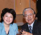 明石康與朱靈舉杯相慶