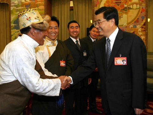 胡錦濤在參加西藏代表團(tuán)審議時(shí)強(qiáng)調(diào)
