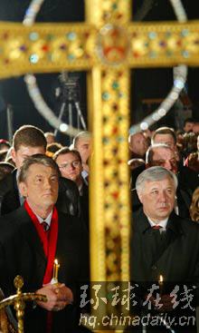 4月26日,烏克蘭總統(tǒng)尤先科(左)也出席了紀(jì)念儀式。