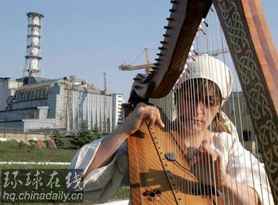 4月26日,來自法國的一個音樂團(tuán)體在切爾諾貝利核電站已經(jīng)被封在地下的4號反應(yīng)堆前表演。