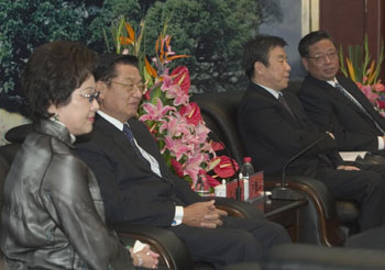 中共福建省委書記盧展工(右二)會見參加海交會的國民黨副主席將江丙坤(左二)及夫人