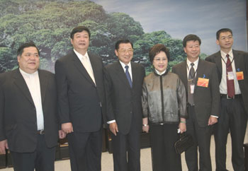 參加海交會的國民黨副主席將江丙坤及夫人會見臺灣金門、馬祖、澎湖代表