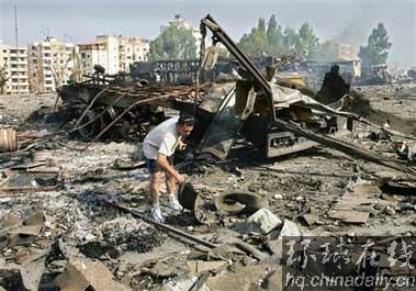 7月19日,在黎巴嫩哈代斯,一名黎巴嫩男子在遭到以軍戰(zhàn)機(jī)空襲的卡車車隊(duì)廢墟中搜尋著。以色列對(duì)黎巴嫩的空襲已經(jīng)造成大量平民傷亡。[美聯(lián)社照片]