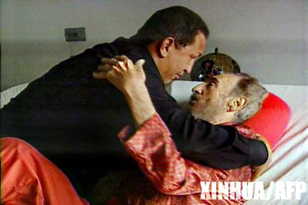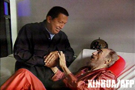 環(huán)球在線消息:古巴電視臺9月1日播放了一段新的錄像,在錄像中古巴領(lǐng)導(dǎo)人卡斯特羅會晤了委內(nèi)瑞拉總統(tǒng)查韋斯和自己的弟弟勞爾·卡斯特羅,從錄像中可以看出卡斯特羅的身體已經(jīng)明顯康復(fù)。