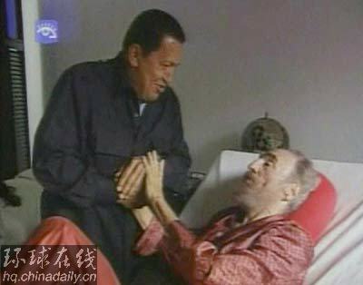 卡斯特羅因病暫時(shí)移交權(quán)力之后,查韋斯對(duì)卡斯特羅的情況一直非常關(guān)心。他多次問(wèn)候,并和卡斯特羅互相通信。8月13日,查韋斯曾經(jīng)前往古巴首都哈瓦那探訪了手術(shù)后的卡斯特羅,并帶上了很有意義的禮物,對(duì)卡斯特羅80大壽表示祝賀。