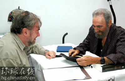 環(huán)球在線消息:古巴領(lǐng)導(dǎo)人菲德?tīng)枴たㄋ固亓_的健康一直備受世人關(guān)注。9月13日,古巴電視臺(tái)播放了卡斯特羅會(huì)見(jiàn)來(lái)訪的阿根廷總統(tǒng)代表的照片。阿根廷總統(tǒng)代表獻(xiàn)給卡斯特羅一件禮物——一個(gè)旅行包,寓意著卡斯特羅將能恢復(fù)健康,出國(guó)訪問(wèn)。而卡斯特羅的弟弟、國(guó)防部長(zhǎng)勞爾透露說(shuō),卡斯特羅已經(jīng)能夠通過(guò)電話下達(dá)命令了。