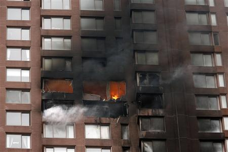 消防局發(fā)言人拉希米說,一架飛機(jī)沖進(jìn)72大街一棟大樓。目擊者稱,這個沖撞導(dǎo)致了很大的聲響,還可以看到燃燒的碎片飛下來。火焰從大廈的窗口冒出。消防員正對大廈著火樓層進(jìn)行澆水。近200名消防員達(dá)到現(xiàn)場參與救援,大火暫定為4級。