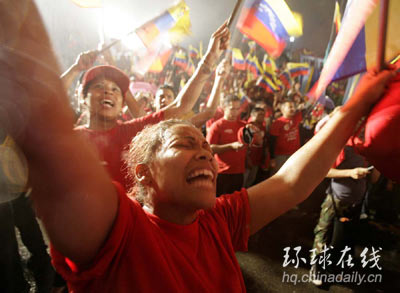 環(huán)球在線消息:在12月3日進(jìn)行的委內(nèi)瑞拉總統(tǒng)選舉中,現(xiàn)任總統(tǒng)查韋斯輕松獲勝,贏得連任。查韋斯的對(duì)手、反對(duì)派候選人羅薩萊斯已經(jīng)承認(rèn)失敗,但他表示將繼續(xù)斗爭。