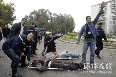11日,阿爾及利亞總理辦公室和機場附近的一個警察局遭到炸彈襲擊,導致數(shù)十人死亡,上百人受傷。隨后,一個自稱是“基地”組織在北非分支的武裝組織宣稱對這起事件負責。該組織發(fā)言人宣稱,他們的襲擊目標是位于阿爾及爾的政府機構(gòu)、國際警察組織的辦公室以及特種警察部隊的一座辦公樓。