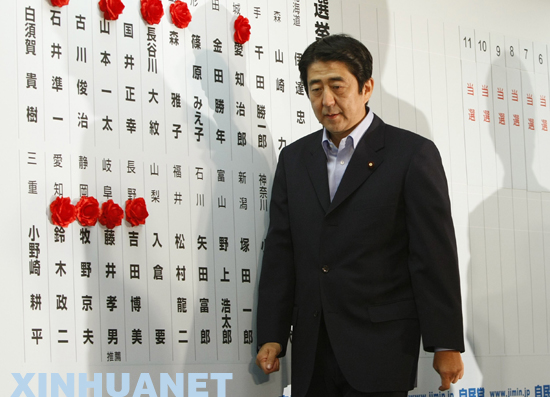 7月29日,在日本東京,日本首相安倍晉三走過(guò)候選人名單。當(dāng)日,日本自民黨在參議院選舉中失利,在野黨贏得參議院超過(guò)半數(shù)的議席,但日本首相安倍晉三表示將繼續(xù)留任。新華社/路透