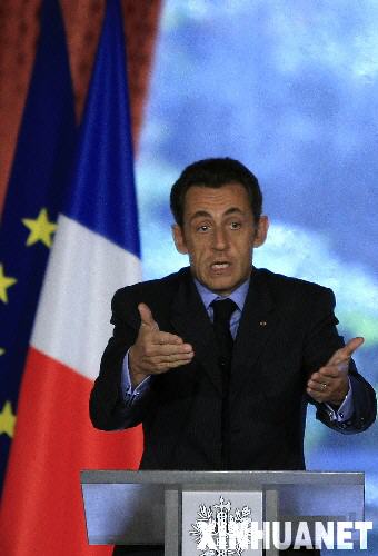 10月13日,法國總統(tǒng)薩科齊在巴黎愛麗舍宮舉行的新聞發(fā)布會上講話。 新華社記者張玉薇攝