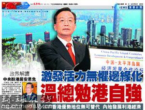 溫家寶呼吁,港人應(yīng)有自立自強的精神,事在人為,只要港人團結(jié)一致,一心一意把香港的事情辦好,香港經(jīng)濟前景就是光明的。這是繼上月全國人大會議閉幕當(dāng)天的總理記者會后,溫家寶再次談及他對香港經(jīng)濟前景的看法,兩次論述,都表達了中央對香港的支持和信心。