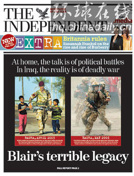 環(huán)球在線消息:英國《獨立報》5月8日頭條文章:布萊爾政府留下的可怕遺產(chǎn)。