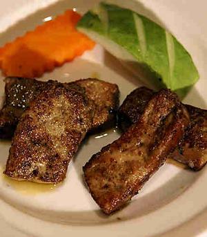 一只鵝肝速凍可貯存3個月,不用腌制,烹飪時用平底鍋拌橄欖油煎制,香氣裊繞。一般來說,八成的熟度最為可口,太熟鵝肝會“鞋”,適當加入一些日本味鹽調(diào)味便可,食的是原味,如家鄉(xiāng)煎鵝肝(98元/位,約170克左右)就完全可以感受到鵝肝外脆內(nèi)滑的感覺,配些水果,剛好可以消膩。
