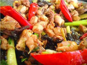 “何村長”說,曾經(jīng)有6個成年人和1個小孩,一餐就吃了6只雞,要知道這些雞一只就超過1公斤呢?上攵@生炒姜蔥雞的魅力滋味了。接著又上了另一道“雞”,那是“生炒姜蔥田雞”,據(jù)說兩道“雞”烹飪中使用的醬汁和方法是一樣的。
