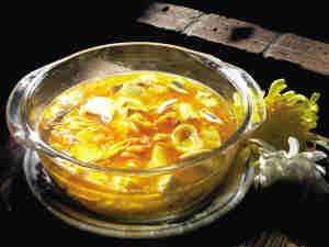 3.在鍋內(nèi)倒入高湯、糟酒,用鹽、糖等調(diào)料調(diào)好味后,再倒入魚片,待湯沸騰后可用勺打去湯面上的沫,保證湯色清純。