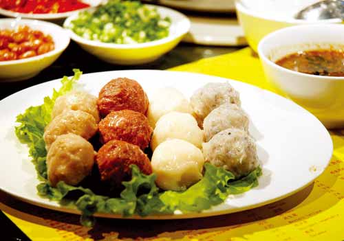 丸類與滑類相比,口感上就更有彈性,手打牛肉丸和手打蝦肉丸都是這里的招牌菜品。后廚“掌門人”傳授了我們涮滑類和丸類的秘訣,就是在它們漂浮起來之后,大約再等一分鐘就可以吃了,這個(gè)時(shí)候肉的營養(yǎng)和口感都是最佳的。