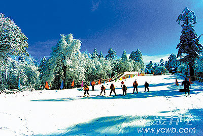 在海拔2400米的雷洞坪滑雪場(chǎng)上,縱情地打雪仗、堆雪人,乘狗拉雪橇,駕雪地飛碟在滑道中一瀉而下直沖300多米的坡底,或是蹬著滑雪板穿行在似冰雕玉琢的樹林中,體驗(yàn)激情四溢的高山滑雪,真是快樂無窮。