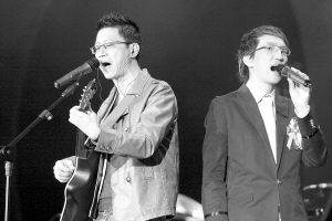 環(huán)球在線消息:“優(yōu)客李林再見上!毖莩獣(huì)昨晚在上海大舞臺(tái)正式上演。歷經(jīng)十年后的重逢,舞臺(tái)上的林志炫和李驥默契依然。不過相比剛出道時(shí),他們多了份底氣,敢向歌壇的前輩AIR