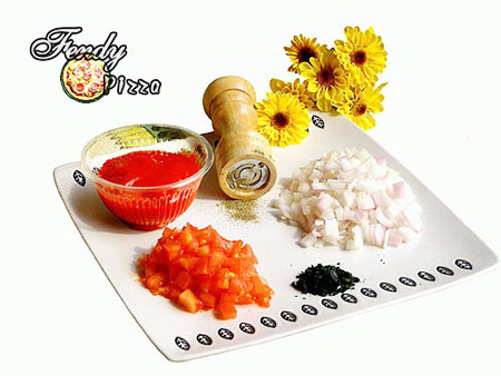 披薩醬的材料:番茄、番茄沙司、洋蔥、黑胡椒、pizza葉