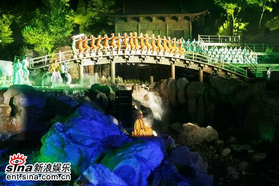中國日報網環(huán)球在線消息:5月24日(農歷四月初八)是傳統(tǒng)的“浴佛節(jié)”,在盛大的祈福儀式后,大型實景劇《禪宗少林·音樂大典》在嵩山千年古剎少林寺登封待仙溝上演,美妙的音樂、絢爛的燈光、精彩的舞蹈和功夫表演將觀眾帶入一個神奇的世界。