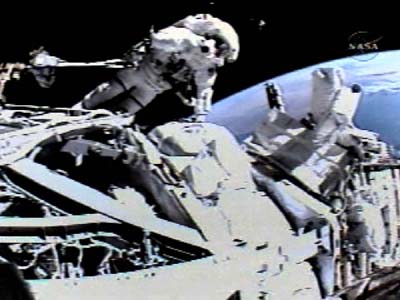 據(jù)美國哥倫比亞廣播公司(CBS)報(bào)道,兩名宇航員身著巨大的航空服走出航天飛機(jī),在太空行走6個(gè)多小時(shí),對國際空間站的組件進(jìn)行了調(diào)整和裝配。這次出艙工作的主要任務(wù)是在一套結(jié)構(gòu)組件之間鋪設(shè)動力和數(shù)據(jù)電纜。這套組件將成為新的太陽能電池板的結(jié)構(gòu)支架,除供電外,它還能為空間站提供數(shù)據(jù)和通信服務(wù)。