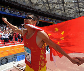 男子三級(jí)跳遠(yuǎn)F11:中國(guó)李端奪金后慶祝