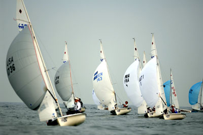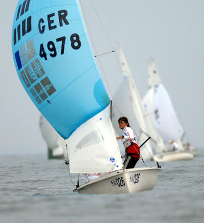 中國日報網環(huán)球在線消息:8月15日,2007青島國際帆船賽進行了首輪比賽。由于風力減小,首輪比賽除49人級和女子470級項目外,其它項目均未進行比賽。
