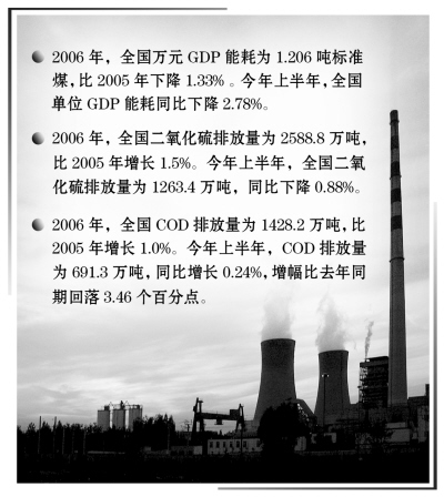 2006年,全國萬元GDP能耗比上年下降1.33%,這是自2003年以來單位GDP能耗首次下降。2007年上半年,全國單位GDP能耗同比下降2.78%,保持連續(xù)4個(gè)季度下降。單位GDP能耗下降主要是由于工業(yè)能源利用效率提高。這一情況表明,去年以來中央采取的宏觀調(diào)控和節(jié)能減排的各項(xiàng)政策措施正在逐漸發(fā)揮作用。
