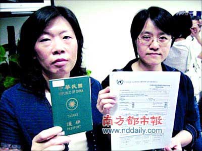 臺灣代表賴瑩瑩(左)赴日內(nèi)瓦參加會議被拒報到