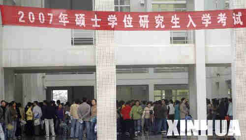 2007年1月20日,考生準(zhǔn)備進(jìn)入海南大學(xué)考場(chǎng)。據(jù)統(tǒng)計(jì),2007年全國(guó)碩士研究生入學(xué)統(tǒng)一考試報(bào)名人數(shù)為128.2萬(wàn)人,比2006年有所增加,其中應(yīng)屆本科畢業(yè)生71.4萬(wàn)人。新華社記者趙穎全 攝