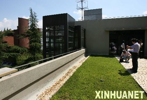 9月7日,幾名記者在上海同濟(jì)大學(xué)文遠(yuǎn)樓屋頂采訪。文遠(yuǎn)樓始建于1953年,該樓屋頂在改造中采用無土種植草皮技術(shù)綠化,并設(shè)計(jì)雨水收集系統(tǒng)。